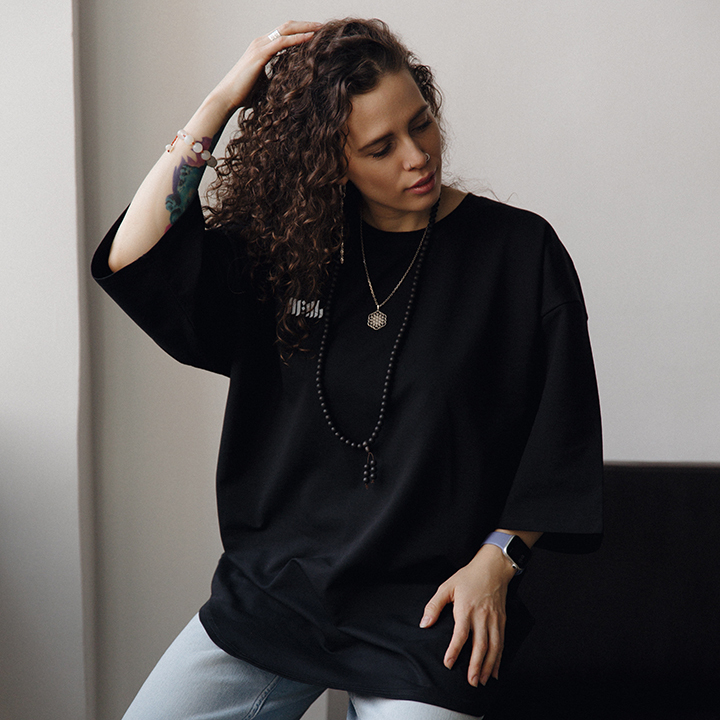 Лимитированный оверсайз-дроп с авторским монохромным арт-принтом.