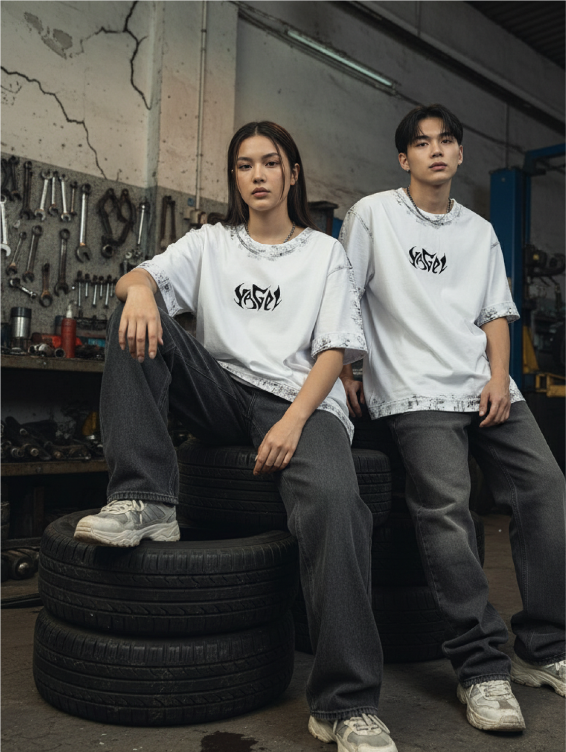 – – Логотип YAGEL на груди в стиле «street tribal».
