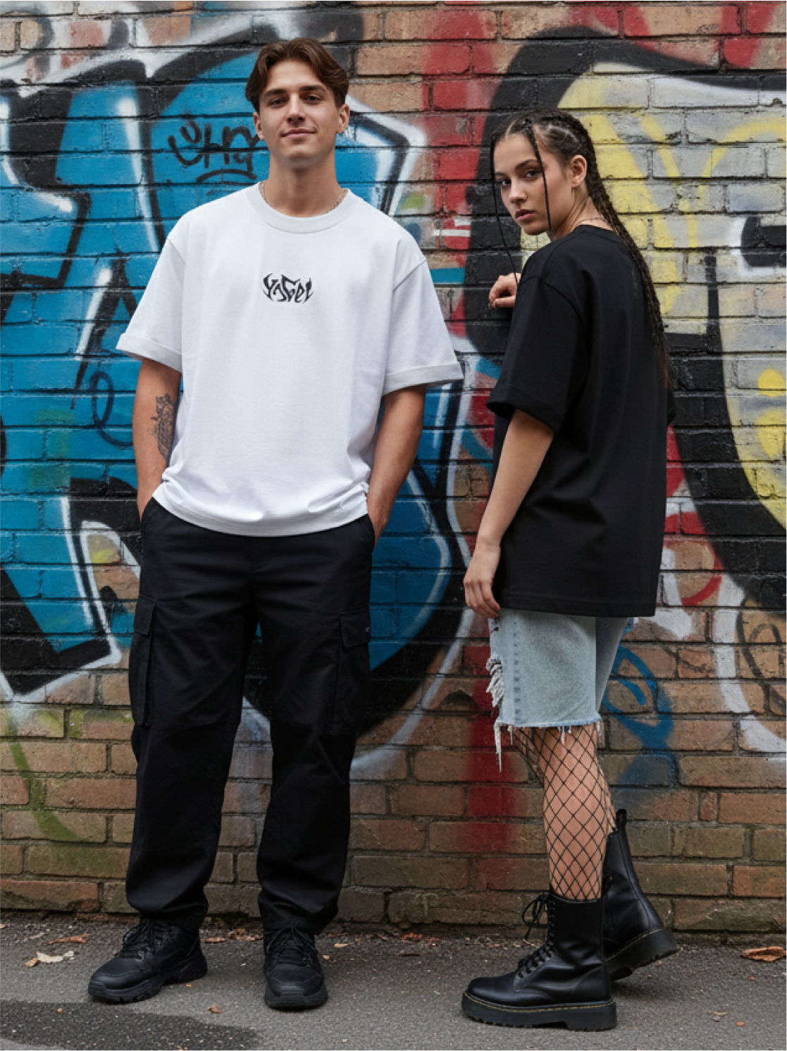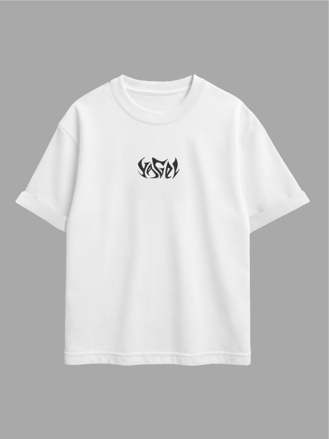 Белая футболка с чёрной вышивкой — та самая база, которая нужна каждому. Чистый фон и контрастный логотип YAGEL в центре делают её универсальной частью гардероба.