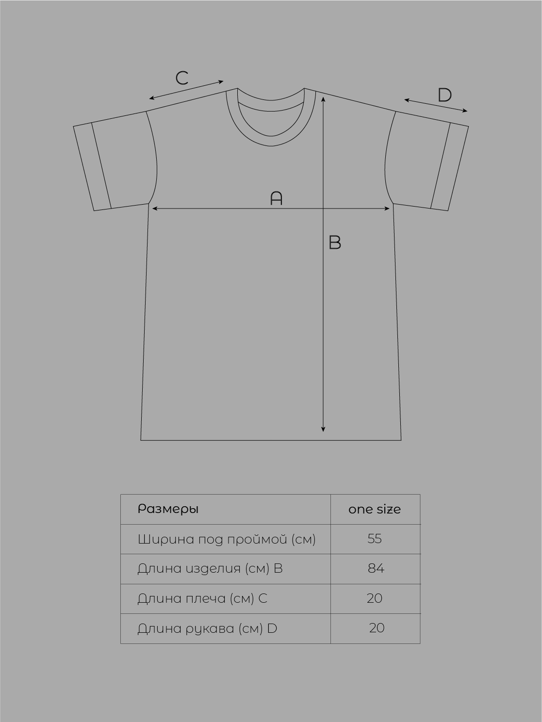 – Универсальный оверсайз-размер, подходит для роста 160–180 см.