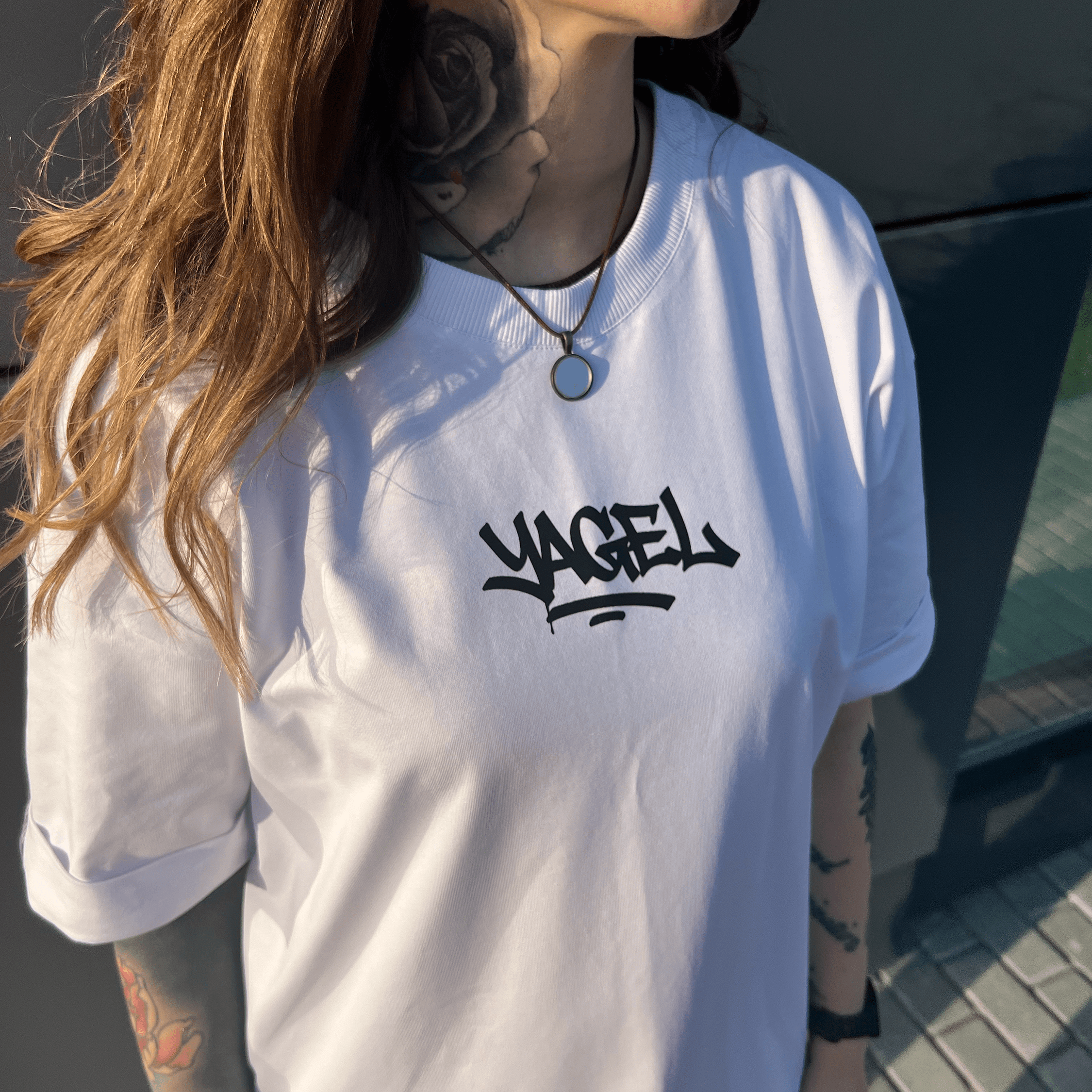 – Репсовые бирки с логотипом YAGEL: одна пришита на правом рукаве, другая — внизу изделия с левой стороны.